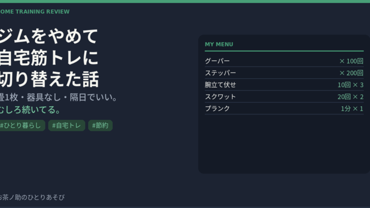 ひとり時間 【実体験】ジムをやめて自宅筋トレに切り替えたら、むしろ続くようになった話
