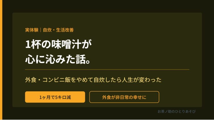 日常 【実体験】外食・コンビニ飯をやめて自炊したら、1杯の味噌汁が心に沁みた話