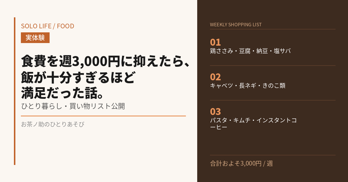節約のつもりで始めたのに、気づいたら食生活が整っていた。週3,000円生活、意外とおすすめです。